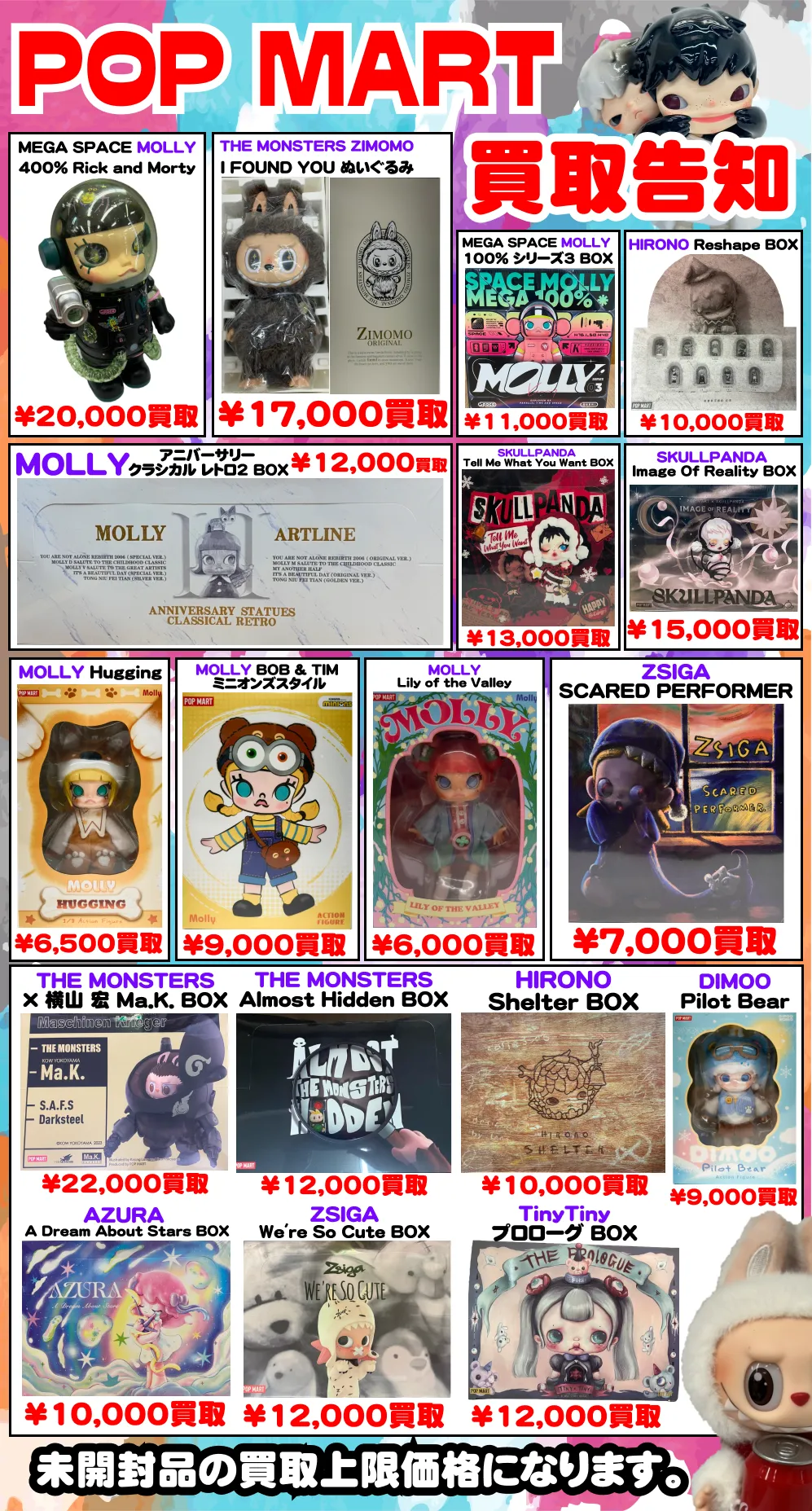 未開封品の買取上限金額になります。