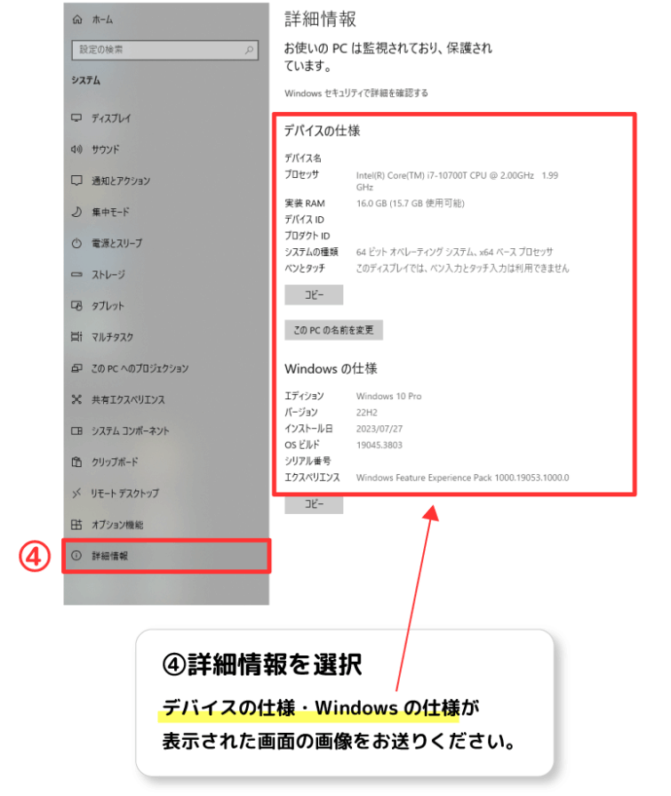 パソコンのスペックの調べ方 Windows10