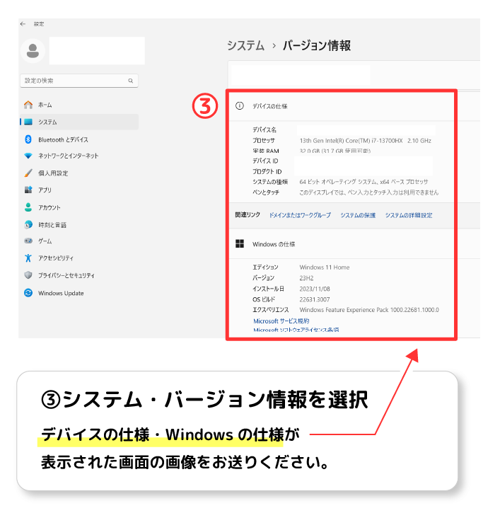 パソコンのスペックの調べ方 Windows11